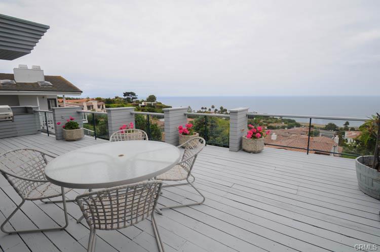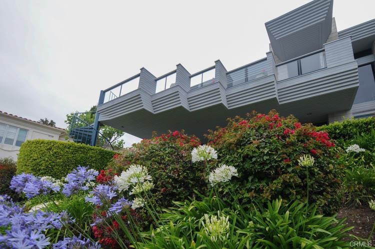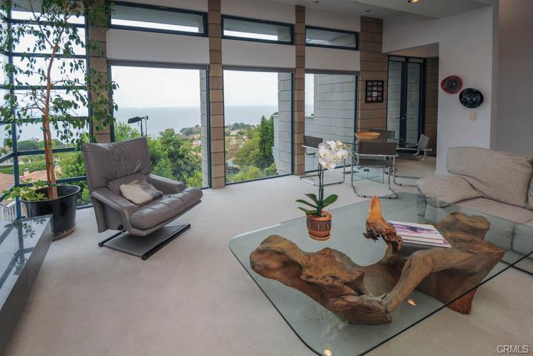 Custom built home designed by renowned architect Wade Killefer. This beautiful home was designed to fully enjoy the sweeping panoramic ocean views with custom accents throughout. Home includes recently added central Air conditioning. As you enter, a gorgeously designed curved stairwell leads you to the upper or lower levels of the home. The upper level includes a living room, den, dining room and kitchen which opens out onto a spacious deck with built in BBQ. All have expansive views of the ocean and Catalina. An open kitchen designed for gourmet cooking and entertaining. Clerestory windows illuminate the home with 20 custom lights throughout the kitchen and living room. Upper deck joins the lower patio with a spiral staircase. Fireplaces located in the den and living room with custom stainless steel and glass framed doors. Large master suite with custom built in teak furniture. Bright master bathroom with a double shower and separate tub. Walk out onto the deck from the master suite and enjoy the lower deck or take stroll down through the garden. Large terraced yard. So many possibilities for gardens, landscaping, and outdoor living. Separate laundry room with custom drainage and access to storage room. Located on a quiet cul de sac.