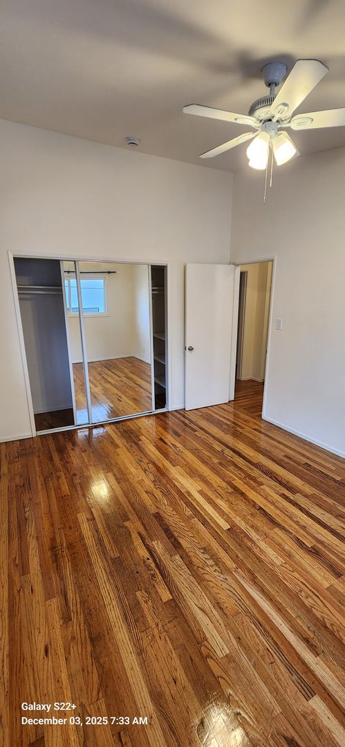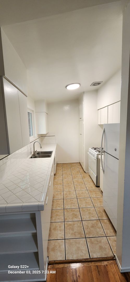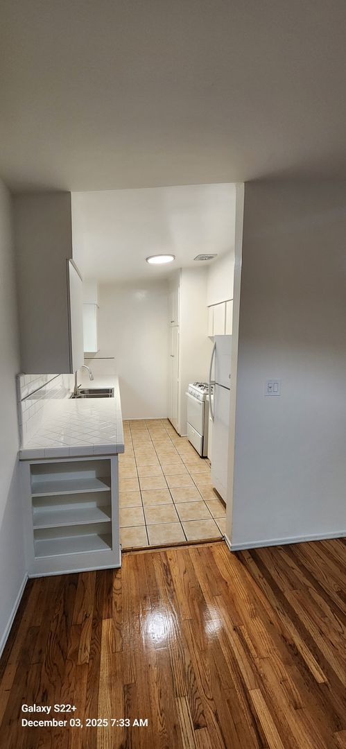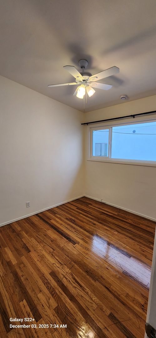 This freshly painted upstairs apartment offers a comfortable and airy living space with vinyl flooring and tile throughout. Equipped with a stove and refrigerator, it’s ready for you to move in. The unit has 2 bedrooms and 1 bathroom, tandem parking for compact vehicles, and access to a shared laundry facility.