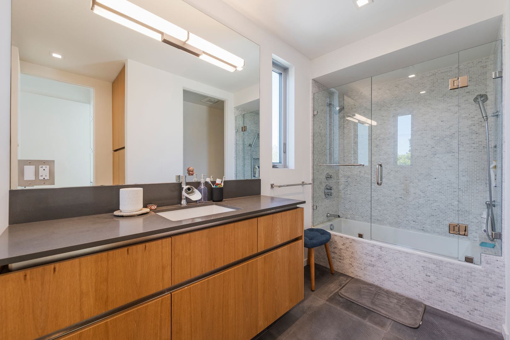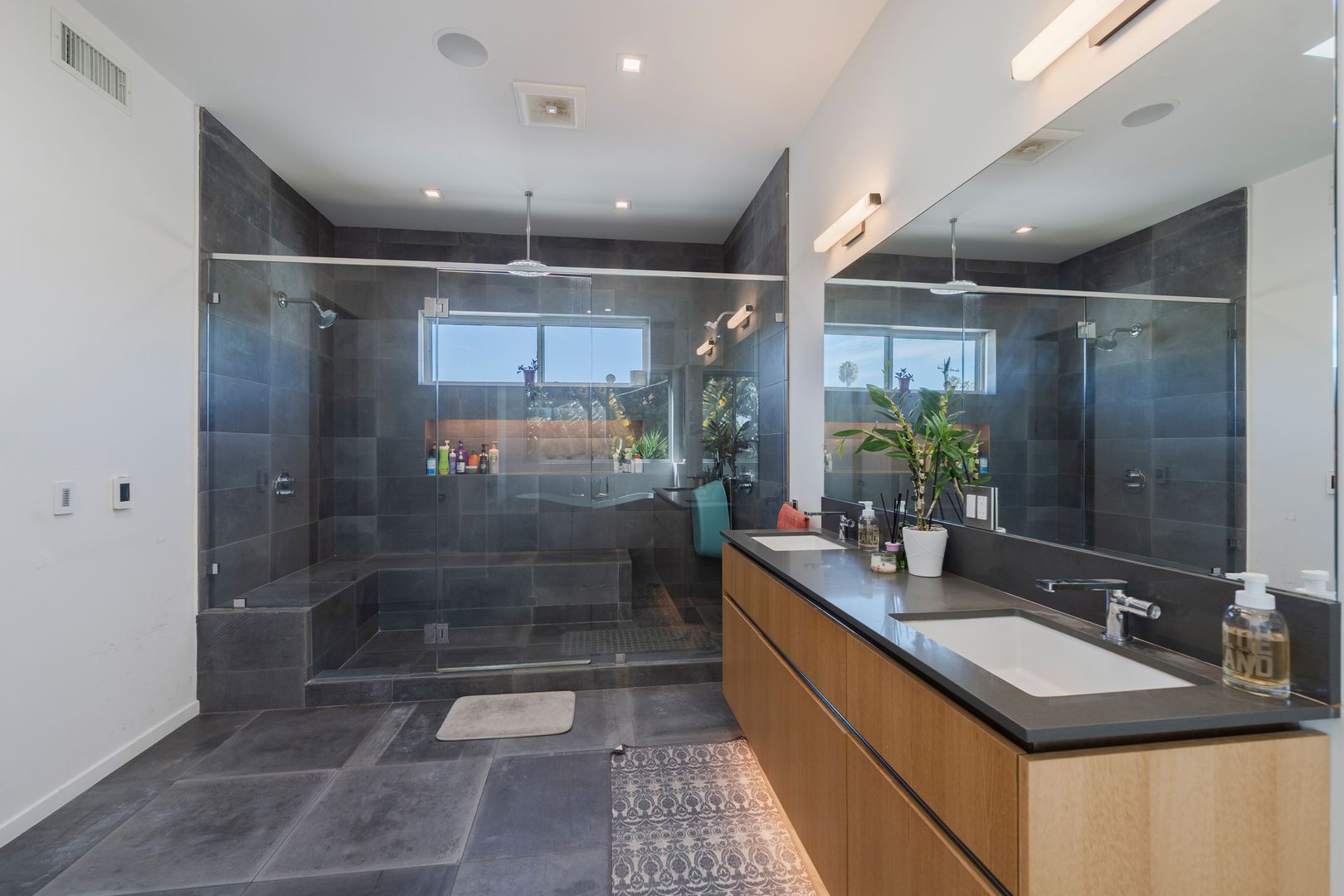 Check out this ultra private 2650 sqft one of a kind custom home, built with the utmost attention to detail. 2 bedrooms and full bathroom on lower level, dual opposite side primary bedrooms with en-suite bathrooms and walk-in closets on upper level make this an excellent family home. Features a private rooftop deck with sunrise/sunsets and city views, brand new eco-friendly lush landscaping to enjoy indoor outdoor living, custom Italian chefs kitchen with commercial grade hood, sub-Z and wolf appliances, hardwareless soft closing cabinets and Caesarstone quartz countertops (in bathrooms as well), heated floors in all bathrooms, large floor to ceiling windows/doors for natural lighting throughout, Italian porcelain tile floors throughout lower level and primary bathroom, French oak wood floors throughout upper level and stairs, SONOS home surround sound, marbled walls, Lutron Radio home automation, Aquasana home filtration, Tesla car charger.
