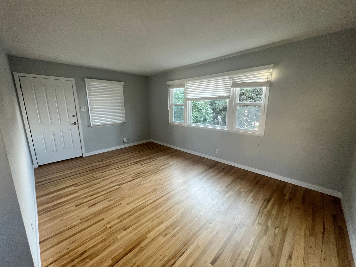 Completely remodeled 1 bed 1 bath unit with garage. Very open unit with great park views from the living room. Washer dryer hookups. Back unit of duplex with no common walls. Very private. Walking distance to Rec park. Hard wood floors. All new appliances. Stove, Refrigerator, microwave & dishwasher.